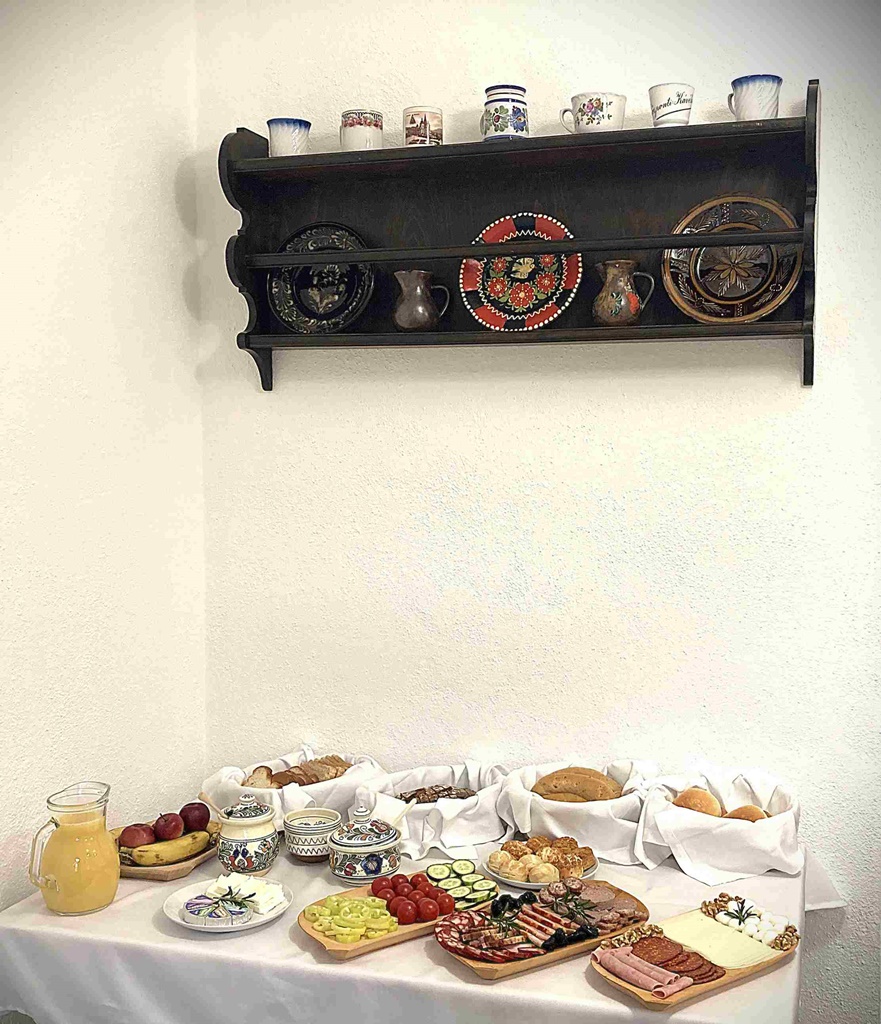 Szépapám háza nemcsak kényelmes szállást, de saját készítésű és helyi termelők portékáiból összeállított, választékos és gazdag reggelit is kínál. A tojás garantáltan boldog tyúkoktól érkezik, a baracklekvár saját recept, de a felvágottak és a sajtok is a közelben készülnek, és ínycsiklandó ízélménnyel alapozzák meg a napot. Slow food ez a javából, ahogy illik! A narancslé prémium minőségű, ahogy a kávé is, sőt ez utóbbi korlátlanul áll egész nap a vendégek rendelkezésére teafilter választékkal és helyi mézzel együtt az „Éléskamrá”-nak elnevezett hangulatos közös étkezőben.