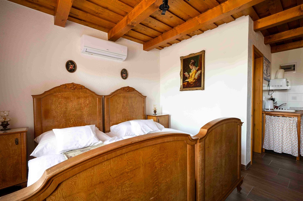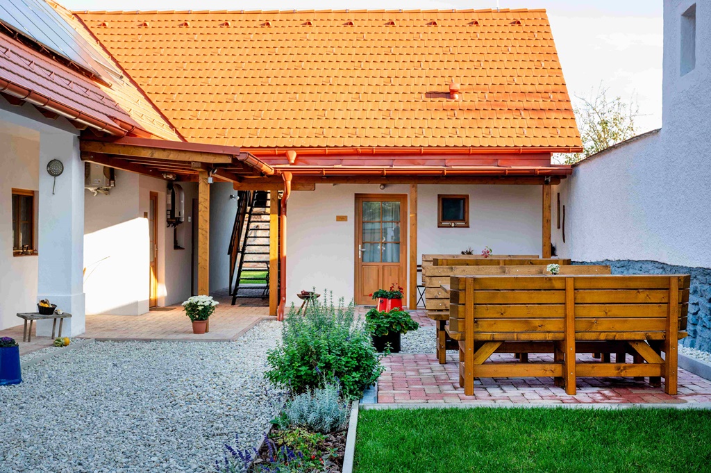 A csodásan restaurált paraszti bútorok, a bájos fali gobelinek, a házi áldás kézimunkák és a régmúlt idők kisebb-nagyobb használati tárgyai nemes egyszerűséggel keverednek itt a napelemek, az okos tévék, a légkondik és a wifi modern világával. Az apró részletek szépsége és a jó stílusérzék kreativitása azonnal magára vonja a tekintetet, a tökéletes kényelmet pedig a minőségi ágymatracok, a minden igényt kielégítő fürdőszoba nyújtja. A hófehérre meszelt, korhű zsalugáteres ablakokkal felszerelt falusi ház szépen gondozott kertje színes virágokkal, zöld gyeppel és kényelmes ülő bútorokkal csábít ejtőzésre a harapnivalóan friss vidéki levegőn, igazi feltöltődést nyújtva testnek és léleknek.